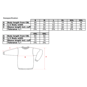 Samenstelling: 65% cotton – 35% polyester – voorgekrompen sweater